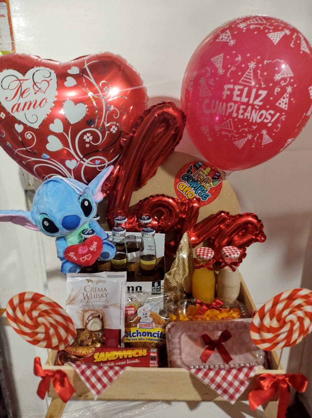 Cada diseño incluye una combinación única de peluches, dulces, licores, rosas y muchos más detalles encantadores.