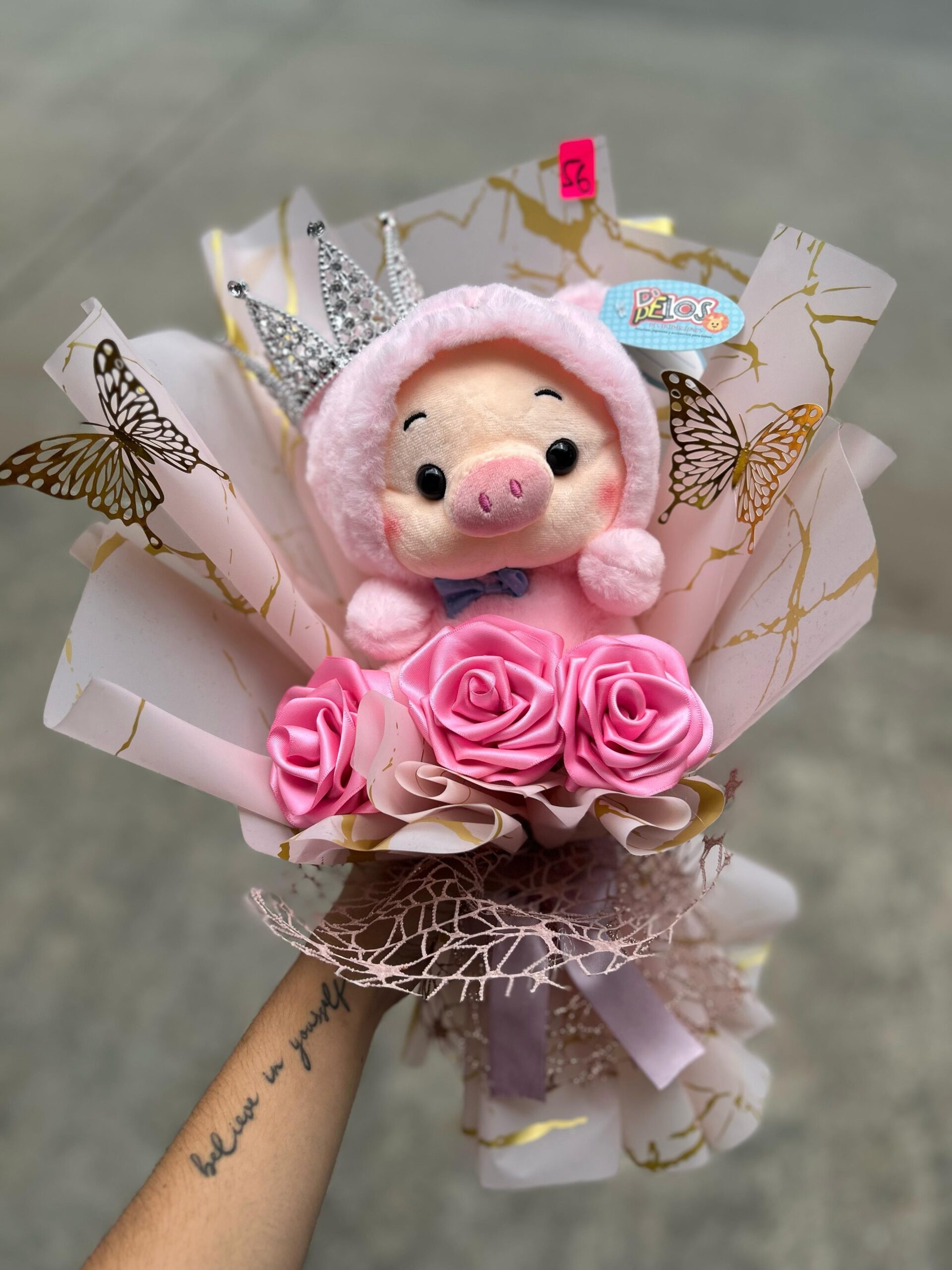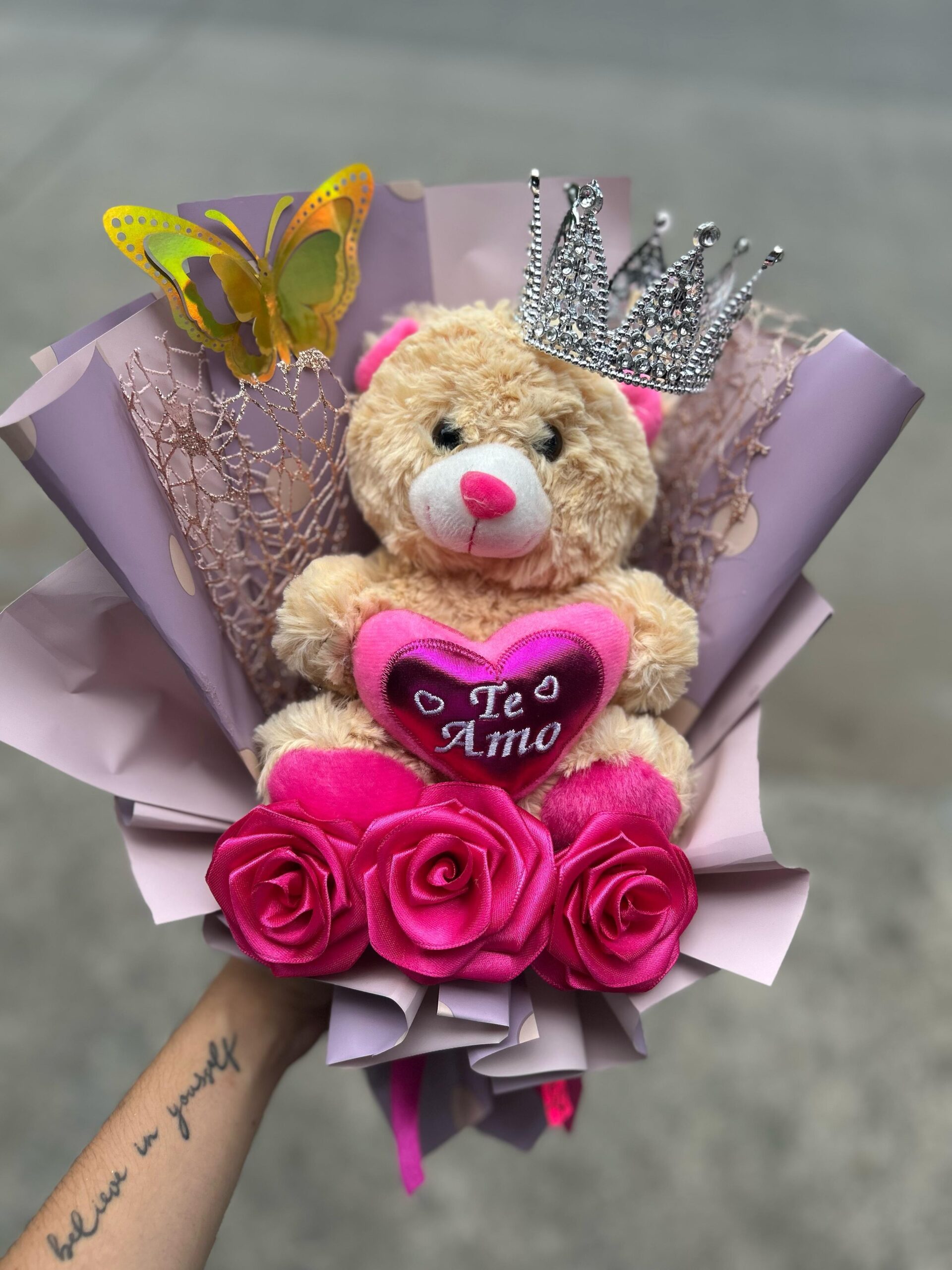 Cada diseño incluye una combinación única de peluches, dulces, licores, rosas y muchos más detalles encantadores.
