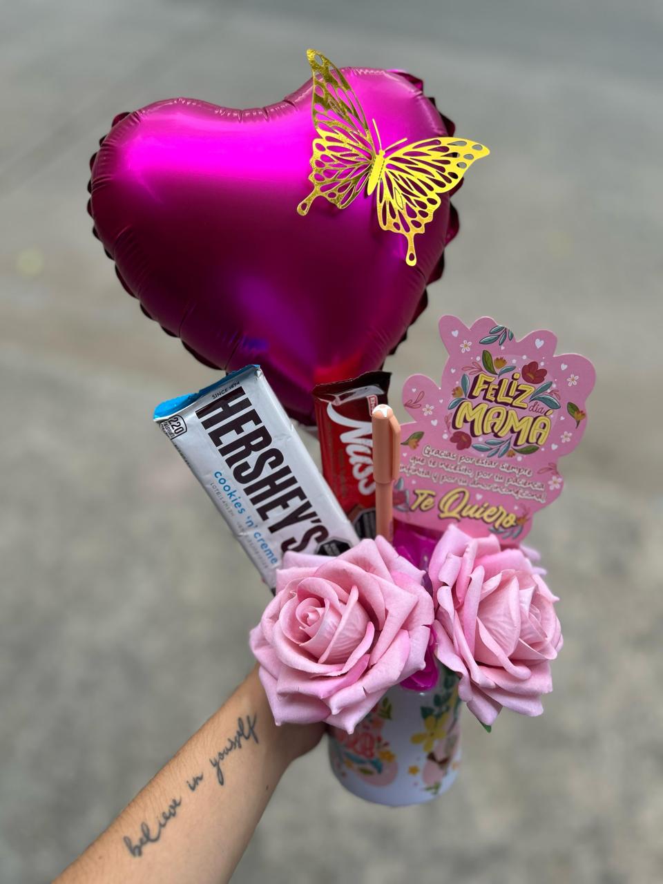 Cada diseño incluye una combinación única de peluches, dulces, licores, rosas y muchos más detalles encantadores.